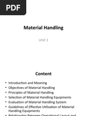 Material Handling Unit 1 Pdf Supply Chain Management Business
