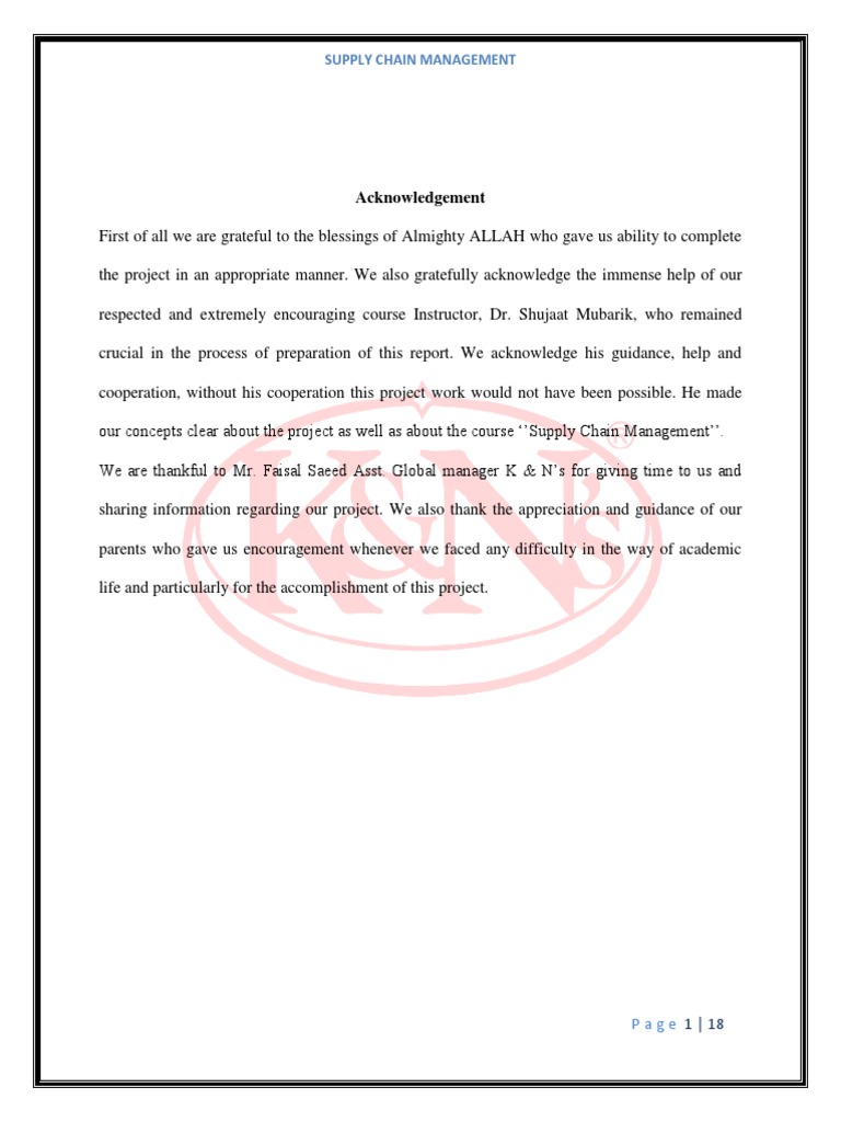 Project Knns Supply Chain Docx K N U2019s Supply Chain Management Submitted To Mr Tahir Masood Submitted By Irshad Hussain Noor Ul An Khan Sadia Sat Course Hero