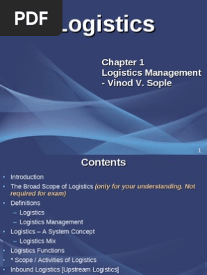 Logistics Management Sople Limited preview. Logistics management 3e is essential for creating value for both customers and stakeholders. Sople 2009 Logistic Management 2nd Edn Pearson Limited.